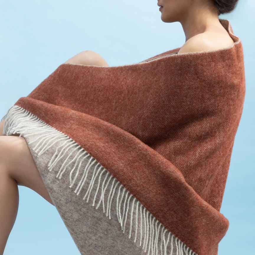 The Loft - Pure New Wool Throw - Reversible Brick / Grey