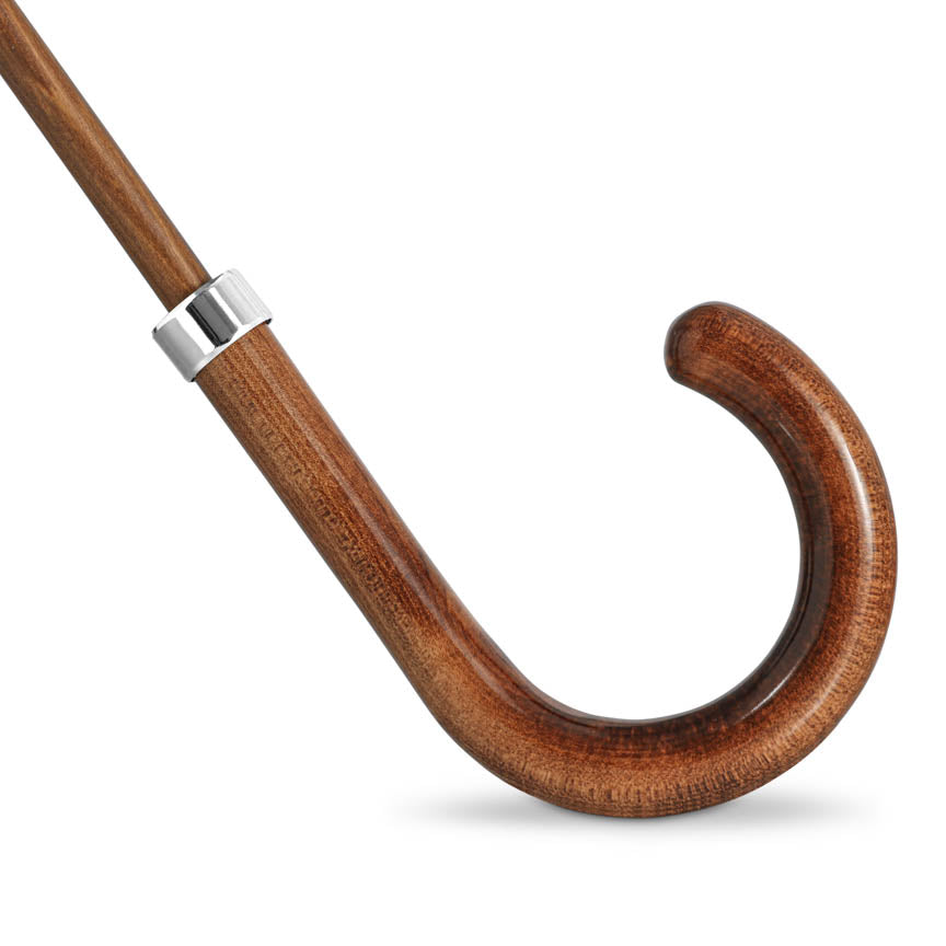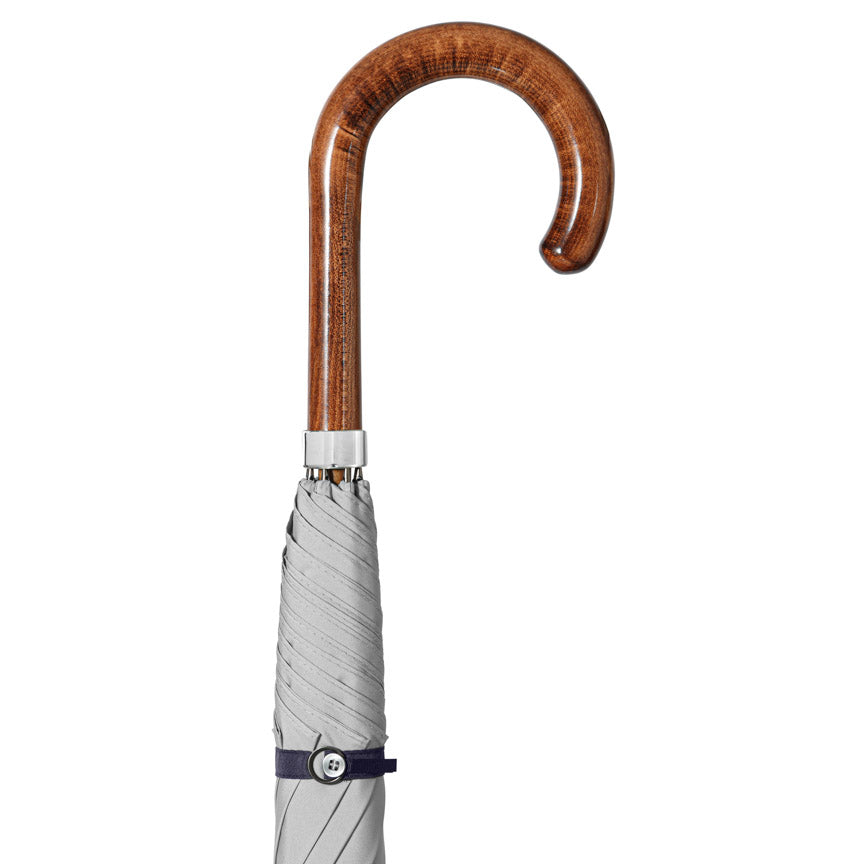 The classic grey canopy is manually cut and assembled over a hand-made frame with a solid beechwood shaft and a smooth scorched maple wood handle, giving this umbrella a luxurious feel with classic British styling.